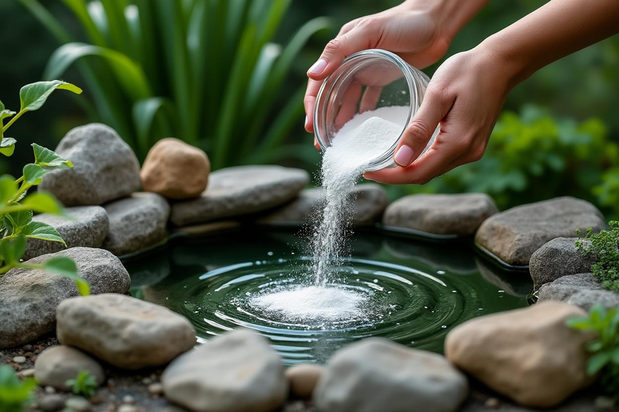 L’usage de sel, notamment le sel d’adoucisseur, est fortement déconseillé dans les bassins à poissons. Il ne cible pas spécifiquement les algues et peut provoquer des désordres biologiques et rendre certains traitements incompatibles.